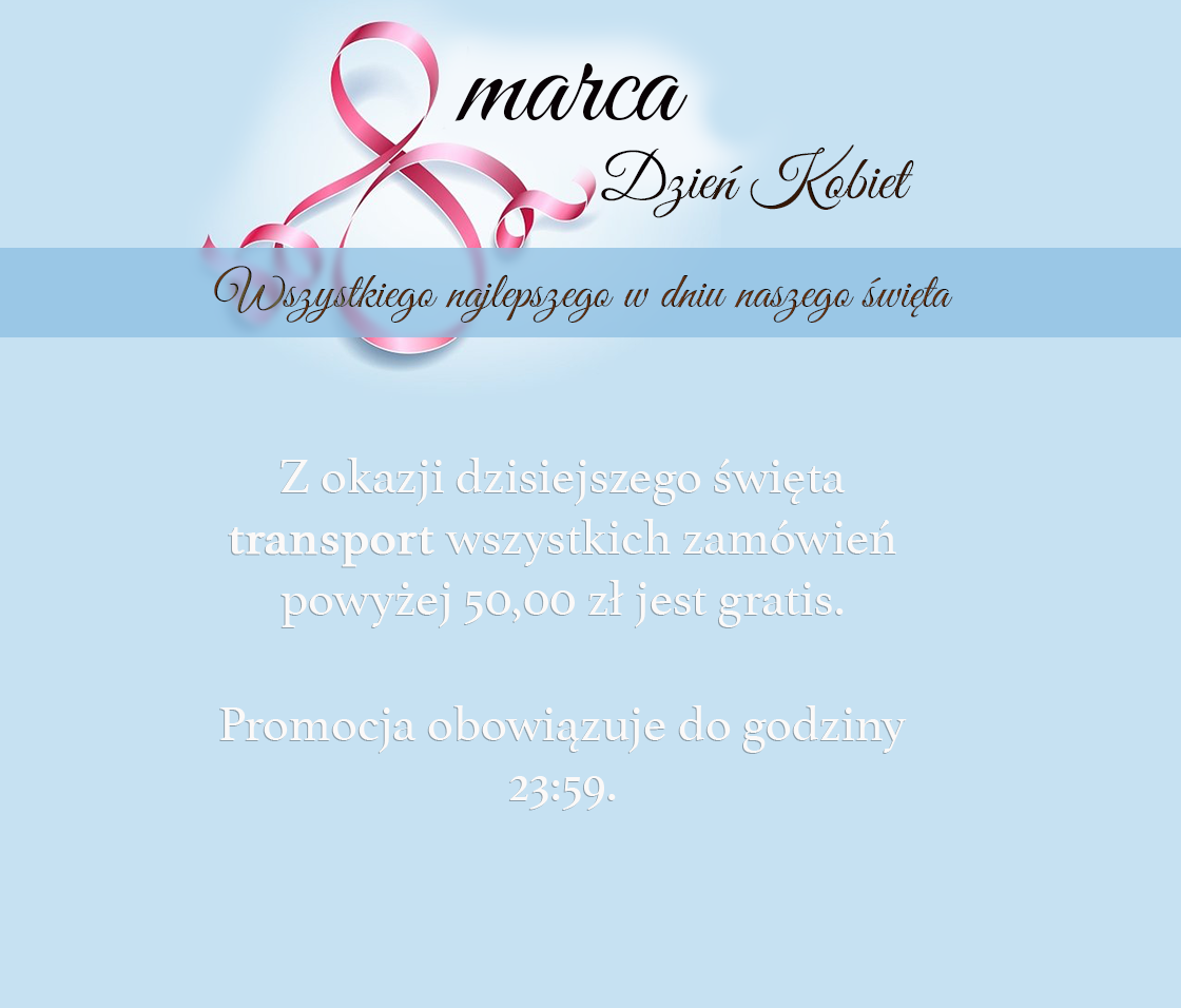 Aby skorzystać z promocji wystarczy przy składaniu zamówienia wybrać jako formę transportu "8 marca - TRANSPORT GRATIS"