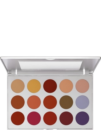 Paleta cieni do powiek 15 kolorów w eleganckiej palecie z lustrem. Cienie pudrowe, prasowane do stosowania na sucho. Nowoczesna formuła i innowacyjne metody produkcji pozwalają uzyskać produkt o konsystencji delikatnej i pozostawiającej uczucie delikatności po zastosowaniu. Mikropigmenty dają możliwość nakładania nie tylko modnych przezroczystości, ale także jaskrawych kolorów. Wysoka trwałość produktu powoduje, że jest on szczególnie polecany do profesjonalnego makijażu. W celu zwiększenia intensywności koloru i zwiększenia trwałości stosujemy wcześniej bazę Kryolan Eye Shadow Primer. Paleta posiada wymienne wkłady. Certyfikat ECARF.