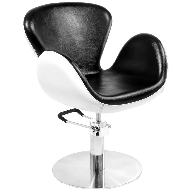 Nowoczesny fotel fryzjerski o wyjątkowym designie. Bardzo wygodny, idealnie pasujący do nowoczesnych salonów. Kolor czarno-biały. Specjalnie wyprofilowany, by zapewnic klientowi wygodną pozycję podczas zabiegu.