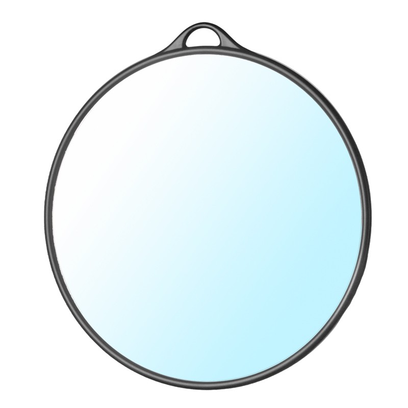 Lustro fryzjerskie w czarnej obudowie z uchwytem z tyłu. Idealne do pracy w salonie fryzjerskim, by pokazać klientowi fryzurę z tyłu głowy.