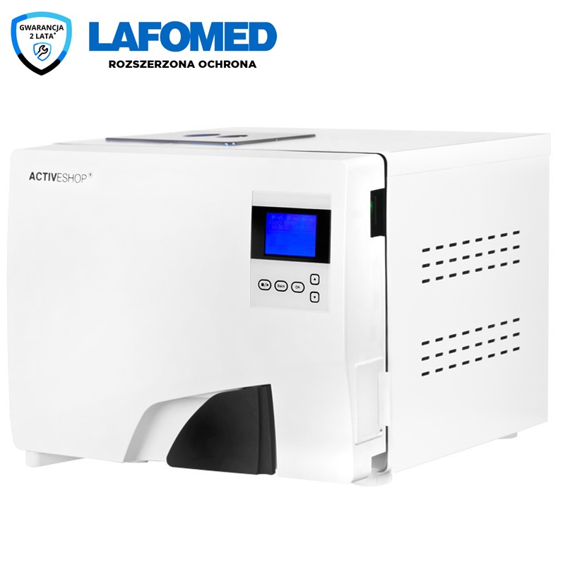 Autoklaw LAFOMED Model LF- 8L-E klasy B (medycznej) jest to urządzenie „Premium” z wbudowaną drukarką termiczną. Autoklaw posiada 8 całkowicie automatycznych programów sterowanych dotykowym panelem z przyjaznym interfejsem w języku Polskim!