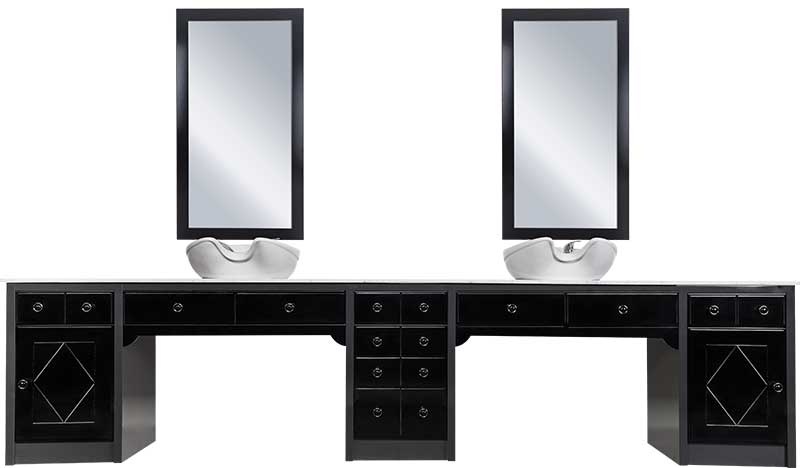 Wykonana w całości z płyty meblowej H1599 lub 18. Blat z płyty meblowej lub marmurowy- dodatkowo płatny. Uchwyty z białej porcelany. Umywalka jako opcja.