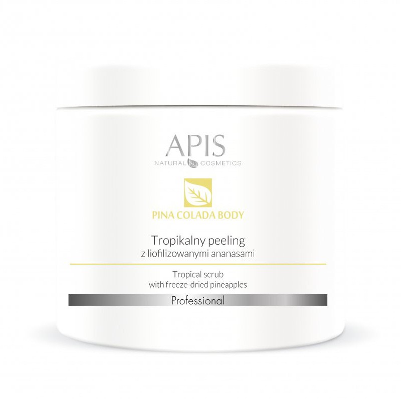 Naturalny peeling z kryształkami cukru trzcinowego o tropikalnym aromacie pina colady. Zawiera aktywnie działającą na skórę guaranę, kompleks antycellulitowy, olej migdałowy, kokosowy, liofilizowane ananasy i wiórki kokosowe. Peeling doskonale oczyszcza z martwych komórek naskórka, pobudza mikrokrążenie, ujędrnia i redukuje cellulit. Sprawia, że skóra jest zregenerowana i idealnie wygładzona, przygotowana do dalszych zabiegów.