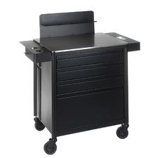 Mobilna stacja robocza MATTI marki INKOO do przechowywania sprzętu do tatuażu. Dzięki solidnej stalowej konstrukcji, gwarantuje długotrwałą żywotność. Mocne szuflady posiadają ukryte uchwyty. Całość malowana proszkowo w kolorze głębokiej czerni. Aluminiowy blat pozwoli na utrzymanie czystości przy pracy z pigmentami. W przedniej części stacji mamy trzy mniejsze szuflady, jedną dużą, pojemną szafkę które pomieszczą sprzęt, akcesoria i wiele więcej. Szafka oraz jedna z małych szuflad wyposażone są dodatkowo w stalowe przyborniki. Szuflady pionowe po obu bocznych ściankach, posiadają po 2 gniazda zasilania, a z jednej strony także 2 gniazda USB. Na tylnej ścianie organizer na przewody. Wszystko co potrzebujesz podczas sesji uporządkowane w jednym miejscu. Podgumowane kółka (z hamulcem) sprawiają, że szafka mimo swojej wagi nie sprawia najmniejszego problemu przy przemieszczaniu. Możliwość rozbudowania stacji o dodatkowe holdery* pozwoli dopasować ją idealnie do swoich potrzeb!