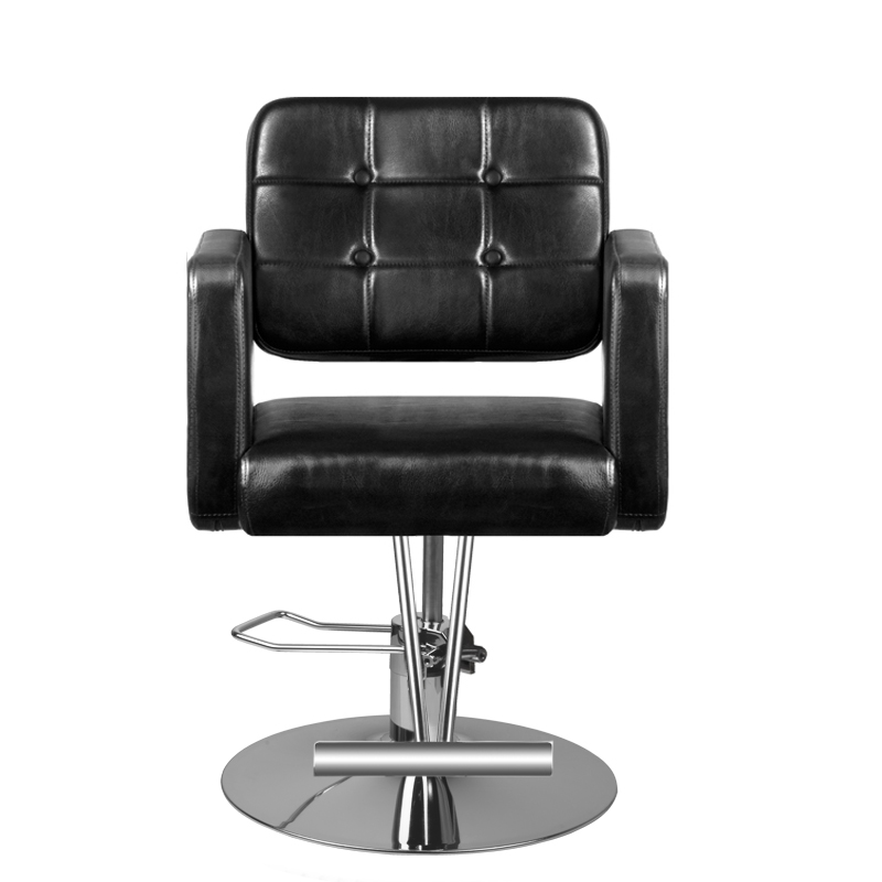 Klaszyczny fotel fryzjerski marki HAIR SYSTEM. Elagancki i bardzo wygodny. Solidna, chromowana podstawa gwarantuje utrzymanie stabilności siedziska. Obicie wykonane z wysokiej jakości czarnej ekoskóry. Fotel posiada regulację góra-dół.