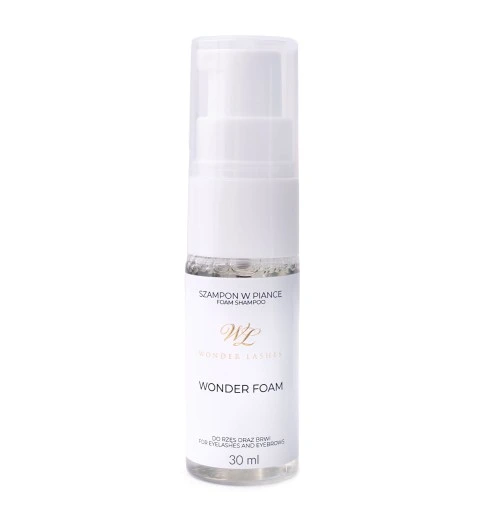 Szampon do rzęs oraz brwi w wygodnym opakowaniu z pompką to doskonały produkt zarówno do przygotowania brwi i rzęs do zabiegów stylizacji jak i pielęgnacji domowej. Skutecznie usuwa z powierzchni skóry oraz włosków zanieczyszczenia. Oczyszcza oraz utrzymuje odpowiednie pH. Szampon w piance działa antyseptycznie. Ułatwia rozpuszczanie substancji tłuszczowych, resztek łoju lub makijażu. Szampon w piance od Wonder Lashes to gwarancja utrzymania wysokiego poziomu higieny podczas zabiegów przedłużania rzęs, liftingu i laminacji oraz koloryzacji brwi. Wygodna formuła o przyjemnym zapachu i niewielka, kompaktowa buteleczka.