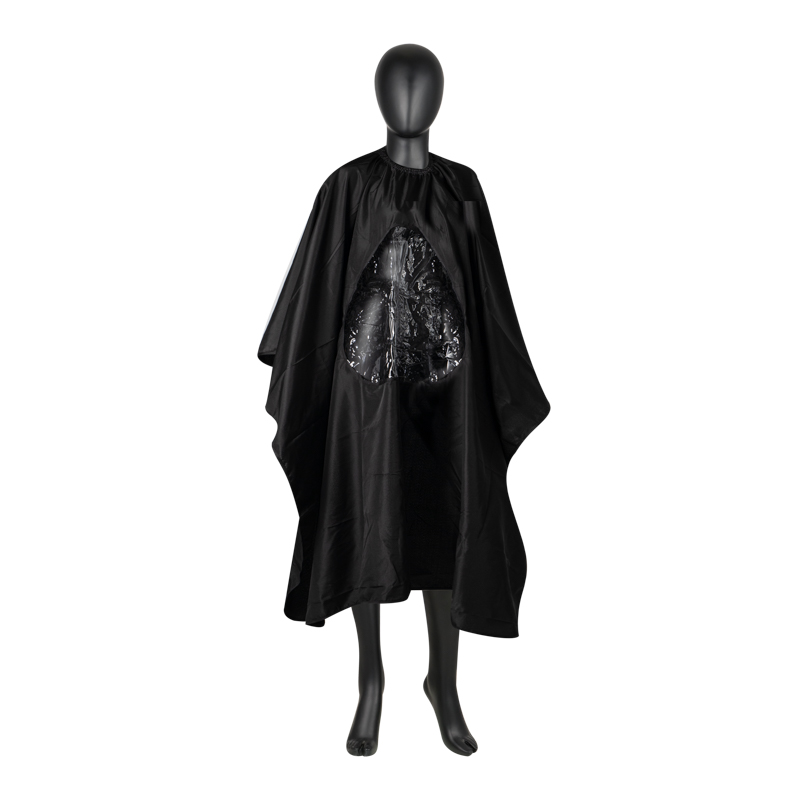 Peleryna fryzjerska wykonana jest z wysokiej jakości materiału (100% polyesrer), przez co włos nie wbija się, lecz ześlizguje się po powierzchni peleryny. Dodatkowo peleryna posada "okienko" umożliwiające kożystanie ze smartfonu. Zapinanie jest trwałe i regulowane metalowymi wsuwkami.