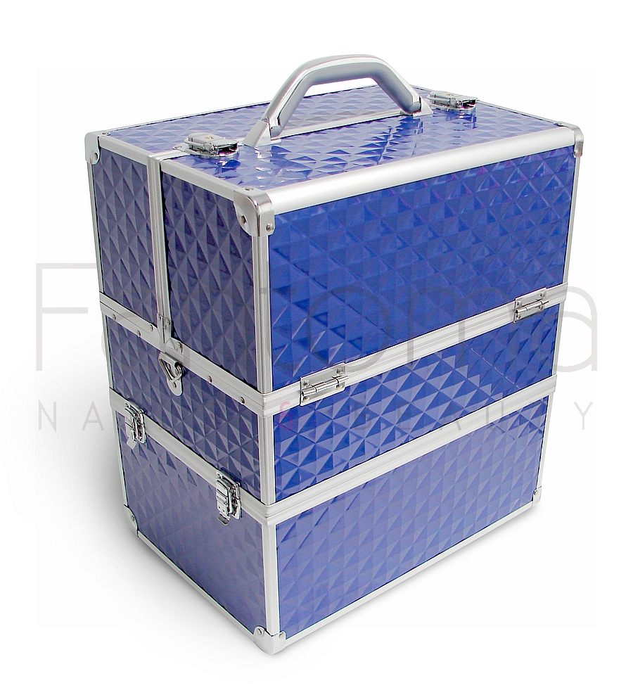 Zewnętrzna część kufra pokryta jest wypukłymi trójkątami, które załamują światło dając jemu niepowtarzalny efekt. Wewnętrzna część pokryta jest przyjemnym, delikatnym w dotyku welurem. Kufer posiada system 6 rozsuwanych szuflad po 3 z każdej strony oraz dwie dwupoziomowe komory w tym jedną doczepianą, która pomieści duże akcesoria takie jak lampy UV, lampy LED, frezarki, kosmetyki itp. W zestawie pasek na ramię oraz dwa komplety kluczy.