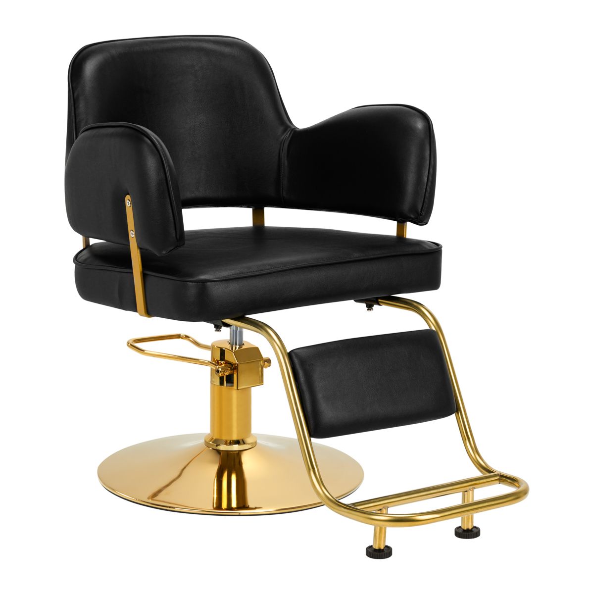 Fotel fryzjerski Hair System Linz wyposażony w trwały podnośnik hydrauliczny z pewnością stanie się praktycznym elementem każdego salonu fryzjerskiego. Klasyczna kolorystyka, prosty design oraz ozdobne polerowane elementy w odcieniach złota nadają mu gustowny wygląd. Wysoka funkcjonalność zapewni komfort zarówno fryzjerom, jak i jego użytkownikom.