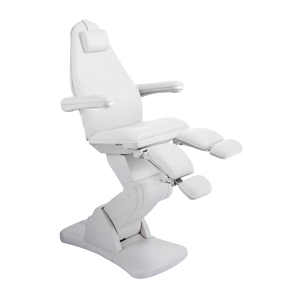 Dodatkowo, pneumatycznie regulowane podnóżki z możliwością wydłużania i odchylenia na boki do 90° zapewniają idealne dopasowanie i doskonały dostęp podczas zabiegów podologicznych.