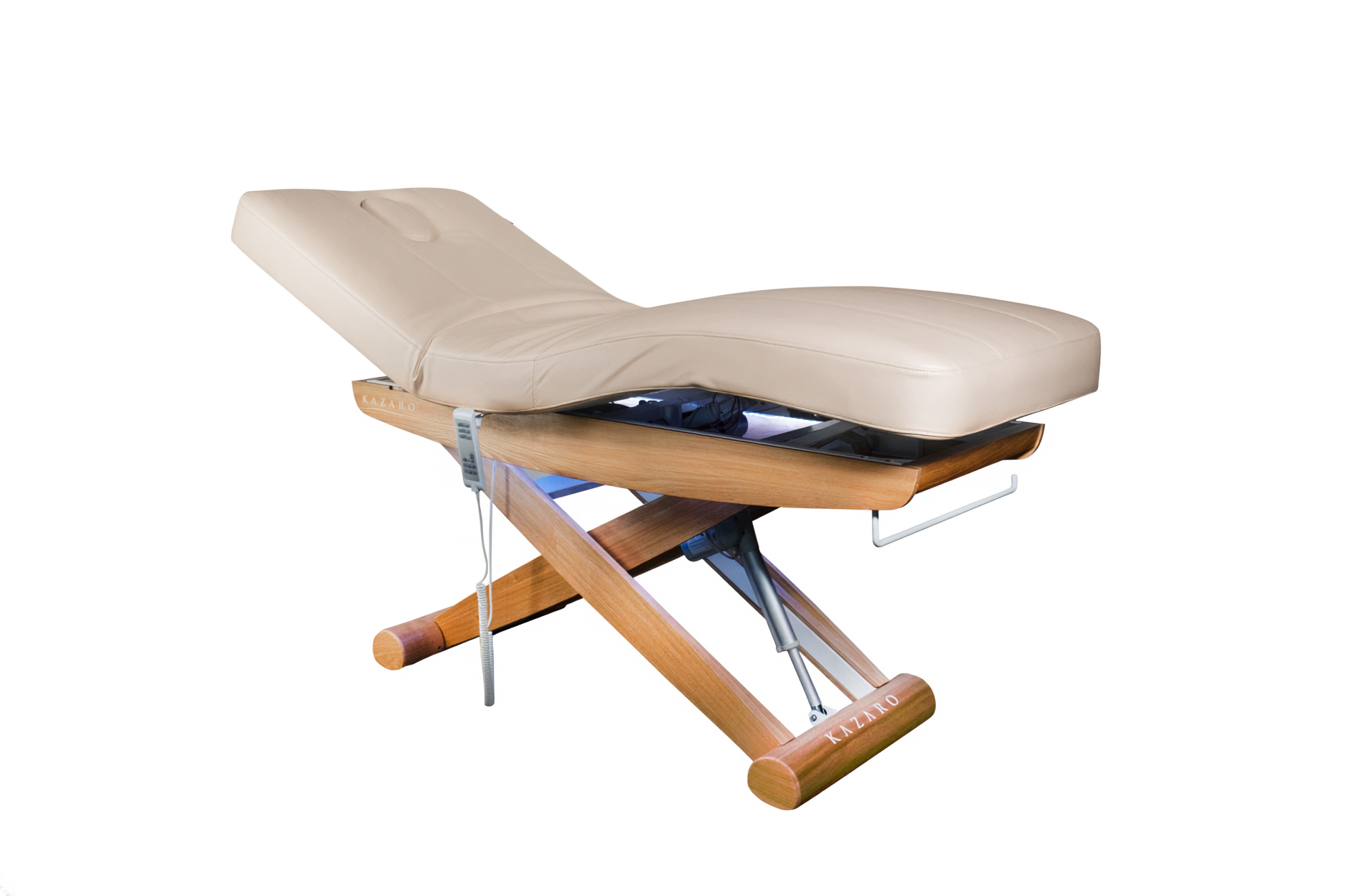 Łóżko posiada innowacyjną i komfortową funkcję podgrzewania. Podgrzewania sprawia, że ciepło rozprowadza się na całej powierzchni łóżka, a klient nie odczuwa chłodu i zimna podczas przeprowadzanego zabiegu. Funkcję tą można w łatwy sposób włączyć lub wyłączyć z poziomu pilota.