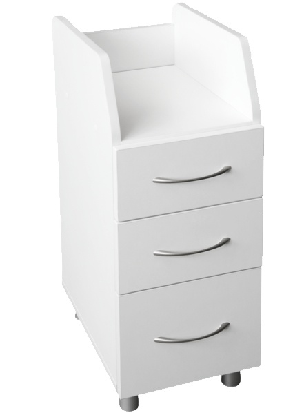 Szafka z 3 szufladami na prowadnicach rolkowych. Boki szuflady wykonane ze specjalnych wąskich prowadnic. Efektem tego są większe szuflady. Wewnętrzny wymiar szuflady 23x33. Szafka ma zainstalowane stopki.