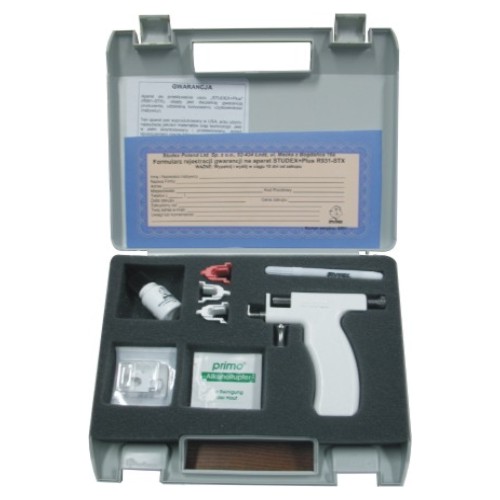 Aparat Studex'a ma wbudowany mechanizm, który łatwo zwalnia tulejkę ze sprężyny. W zestawie znajduje się komplet wkładek, które ułatwiają ładowanie pistoletu.