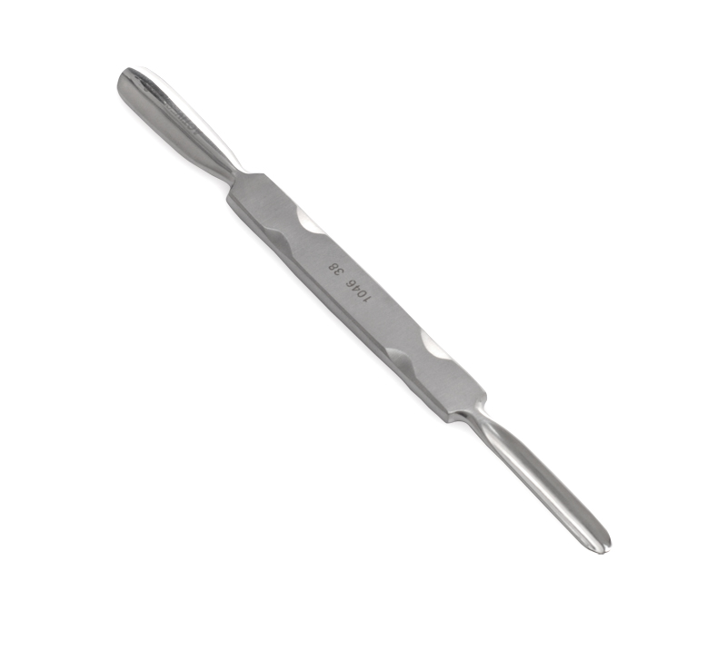 Dwustronne bardzo dobrze wyprofilowane do dłoni kopytko do manicure i pedicure ze stali nierdzewnej.