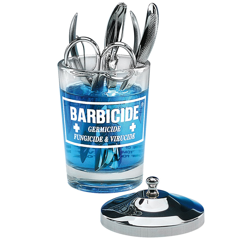Charakterystyczny pojemnik BARBICIDE z przezroczystym niebieskim płynem dezynfekcyjnym to symbol gabinetu profesjonalnego i na wysokim poziomie. Pojemnik Barbicide znany w gabinetach kosmetycznych i salonach fryzjerskich całego świata.